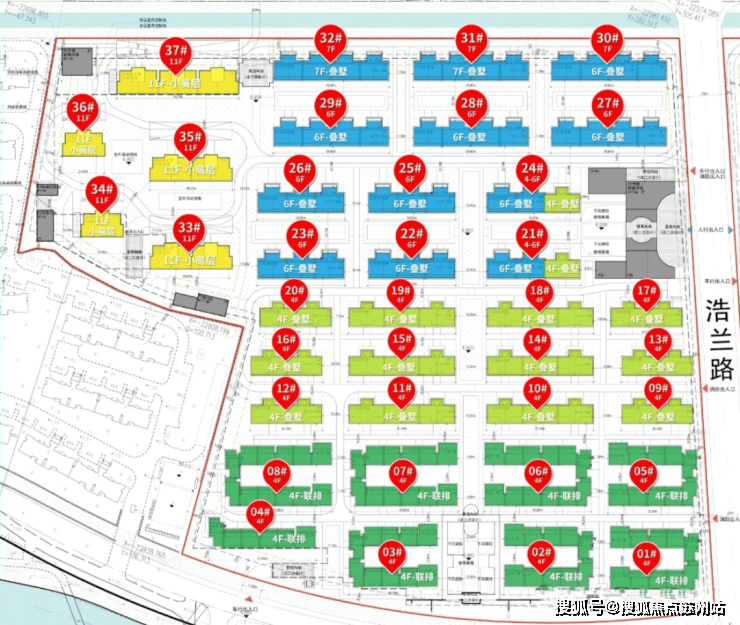 此中小高层室第约176套,4F叠墅约80套,6-7F墅约60套,4F联排产物约26套!