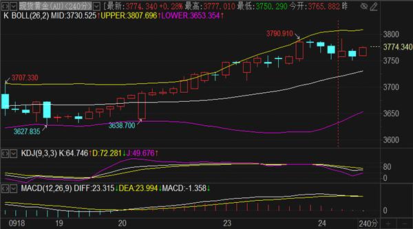 技巧面来看,1小时周期很故意思,布林带上轨承压3791,下轨维持3750,趋向线一线,这是向例的波动畛域,如若向下破位3750则希望磨练1小时平行通道下轨3705,若金价向上破位3791则希望磨练1小时通道上轨3810压制点。对待行情没有人能做好一次不错,但昨夜的回撤曾经让4小时周期SAR目标展现正在顶部向下发散,于我小我而言,我会采选反弹做空。
