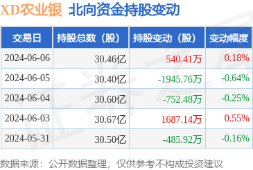 代理收付款项业务2025年10月23日证券之星音讯,6月6日北向资金增持540.41万股XD农业银,按当日市值估算,北向资金当日净流入2397.44万元,增持股数正在沪股通排名第27。近5个营业日中,获北向资金减持的有3天,累计净减持956.61万股。近20个营业日中,获北向资金减持的有13天,累计净减持1.46亿股。截至目前,北向资金持有XD农业银30.46亿股,占公司A股总股本的0.87%。