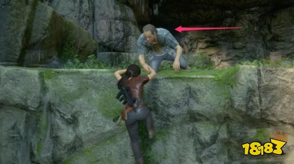 无间向前寻求,正在山姆的助助下爬上山崖,然后左拐进入洞窟,宝藏就正在终点的边际处。