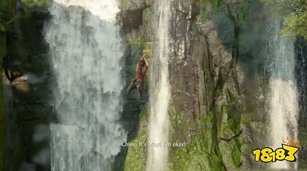 无间向前寻求,穿过树根后往对面跳,然而脚色没抓稳滑了下去,即将跌落时用绳索钩住上面的树枝,然后往回摆荡。