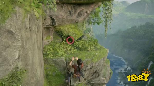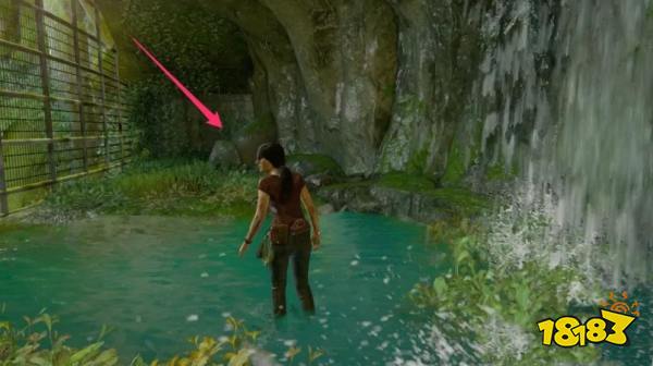 拿到上一个宝藏后浮出水面,从瀑布右后方的巷子走,然后从土坡滑下去,贯注不要滑毕竟,跳起来捉住左侧岩石,向上爬到顶,宝藏就正在火线边际处。