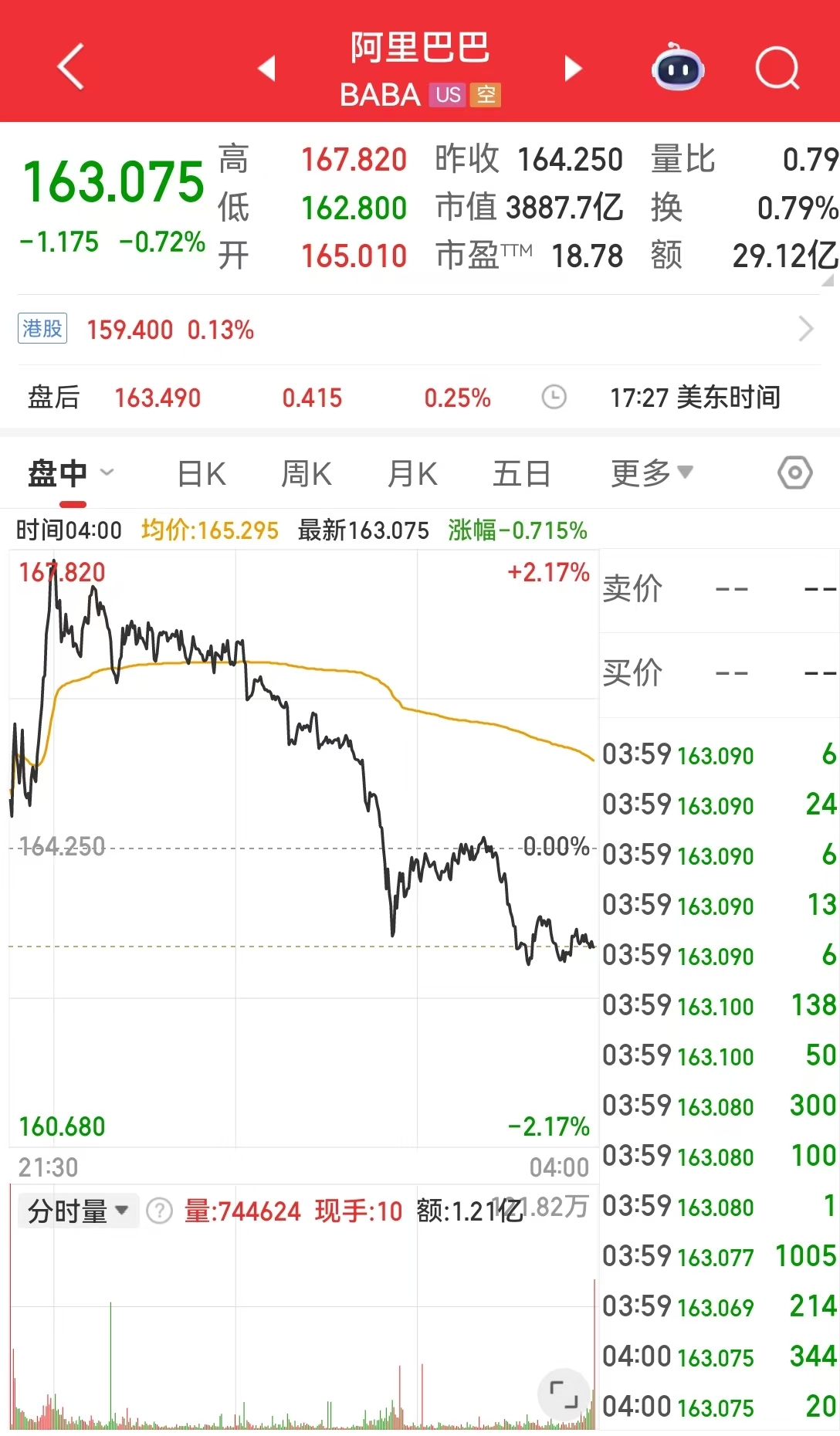 纳斯达克中邦金龙指数收跌2.22%,热门中概股普跌,百度跌超8%,知乎跌超5%,哔哩哔哩跌超4%,好他日、新东方跌超3%,京东跌近3%。